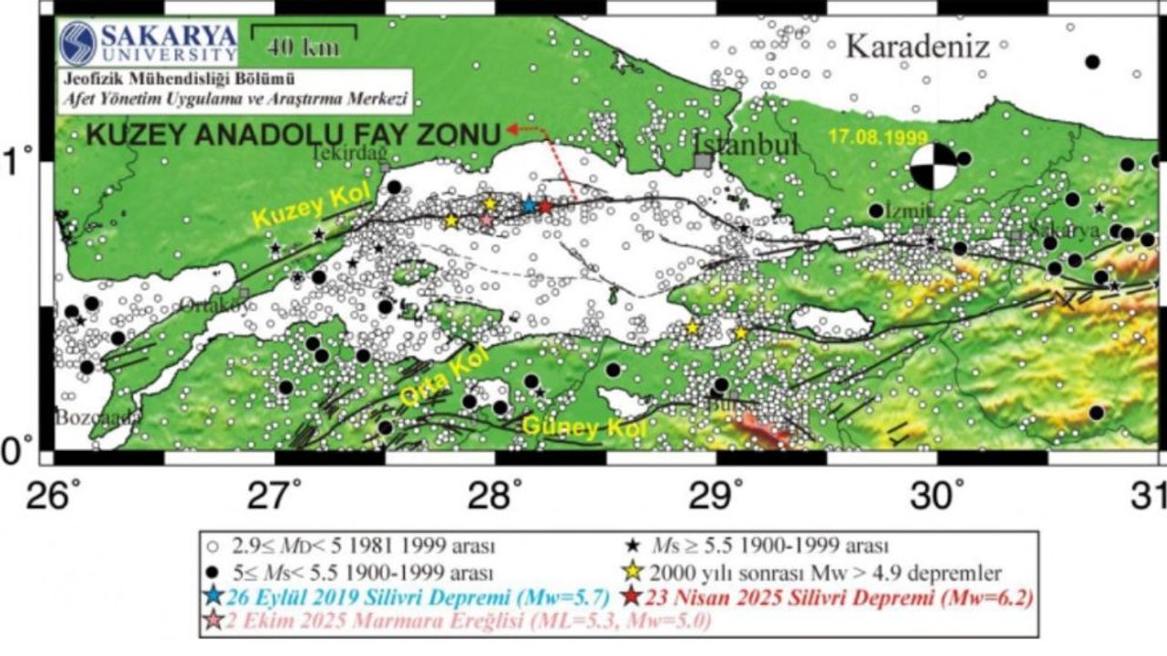 Sakarya Üniversitesi Jeofizik Mühendisliği Bölümü ile Afet Yönetim Uygulama ve Araştırma Merkezi, 2 Ekim tarihinde Marmara Ereğlisi açıklarında meydana gelen 5.0 büyüklüğündeki depremle ilgili bir değerlendirme raporu yayımladı. Sakarya Üniversitesi uzmanları, depremin Kuzey Anadolu Fay Zonu’nun (KAFZ) kuzey kolu üzerinde, Marmara Denizi altındaki Ana Marmara Fayı yakınında meydana geldiğini belirtti.