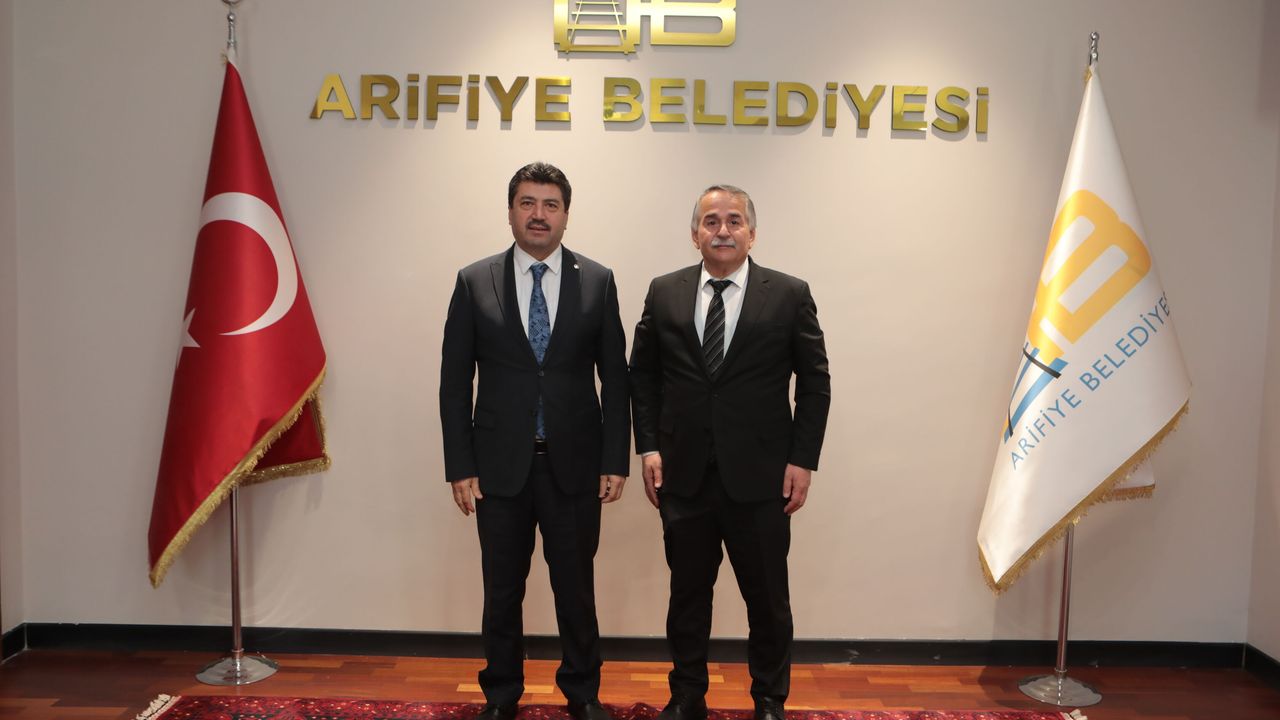 Rektör Mehmet Sarıbıyık Arifiye Belediye Başkanı İsmail Karakullukçu’ya makamında misafir oldıu.