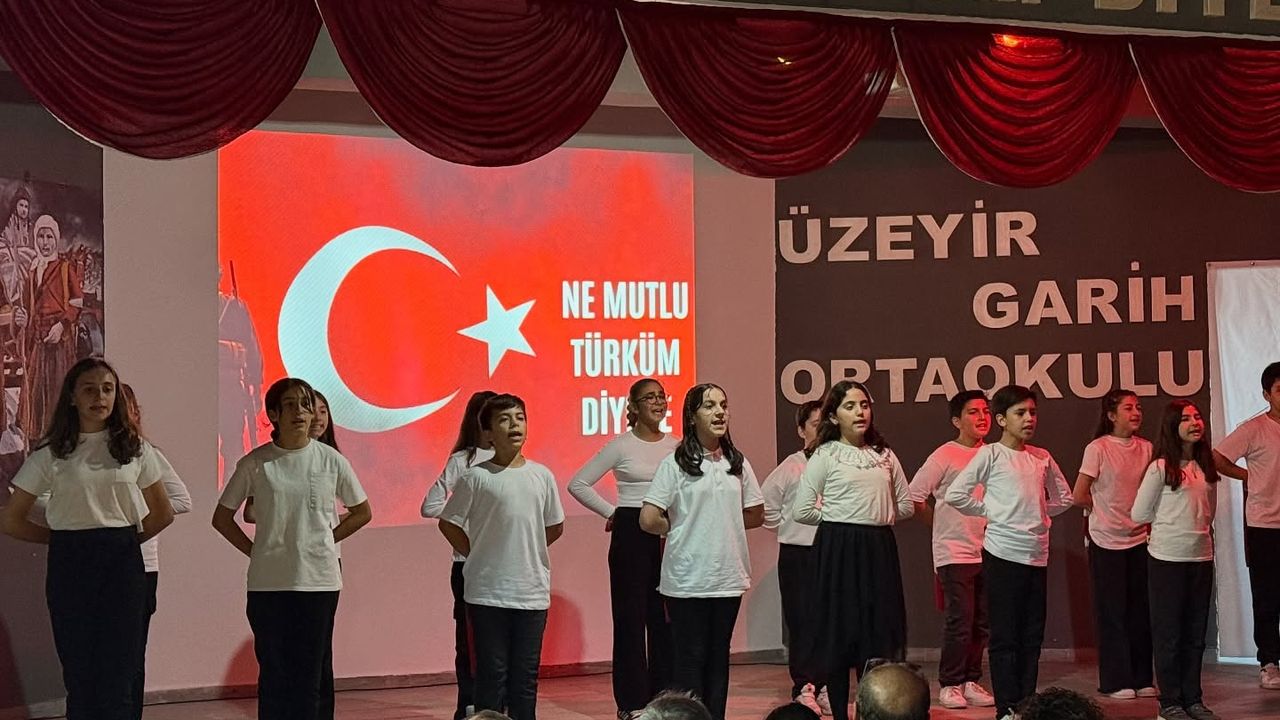 Üzeyir Garih Ortaokulunda 29 Ekim Cumhuriyet Bayramı dolayısıyla düzenlenen Saygıo duruşu ve İstiklal Marşının okunması ile başlayan kutlama programında öğrencilerin hazırladığı anlamlı gösteriler büyük bir gururla izlendi.